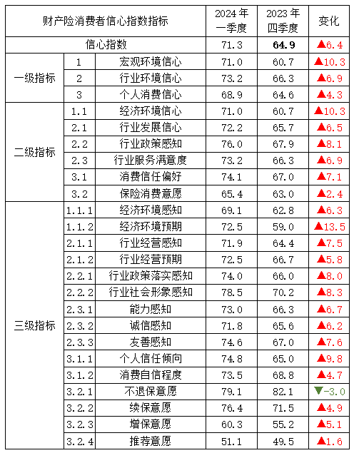 【指数成果】2024年一季度中国保险消费者信心指数70.9